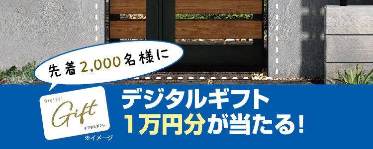 YKKよりお得なキャンペーンのお知らせ♪ ◆◆ デジタルギフト(1万円)が先着2.000名様に当たる ◆◆ ●YKK APのスマートコントロールキー玄関ドアに連動する【電気錠付門扉】をご購入いただいたお施主様にプレゼント