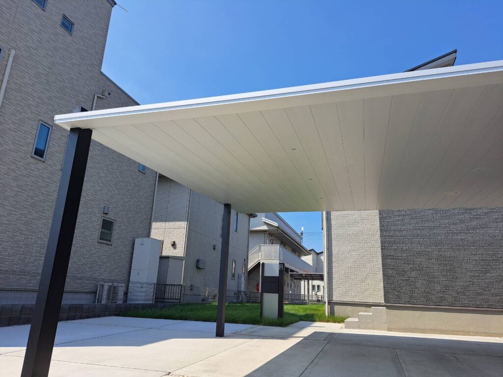 屋根材は、アルミの質感を生かしたマットシルバーで落ち着いた印象に。