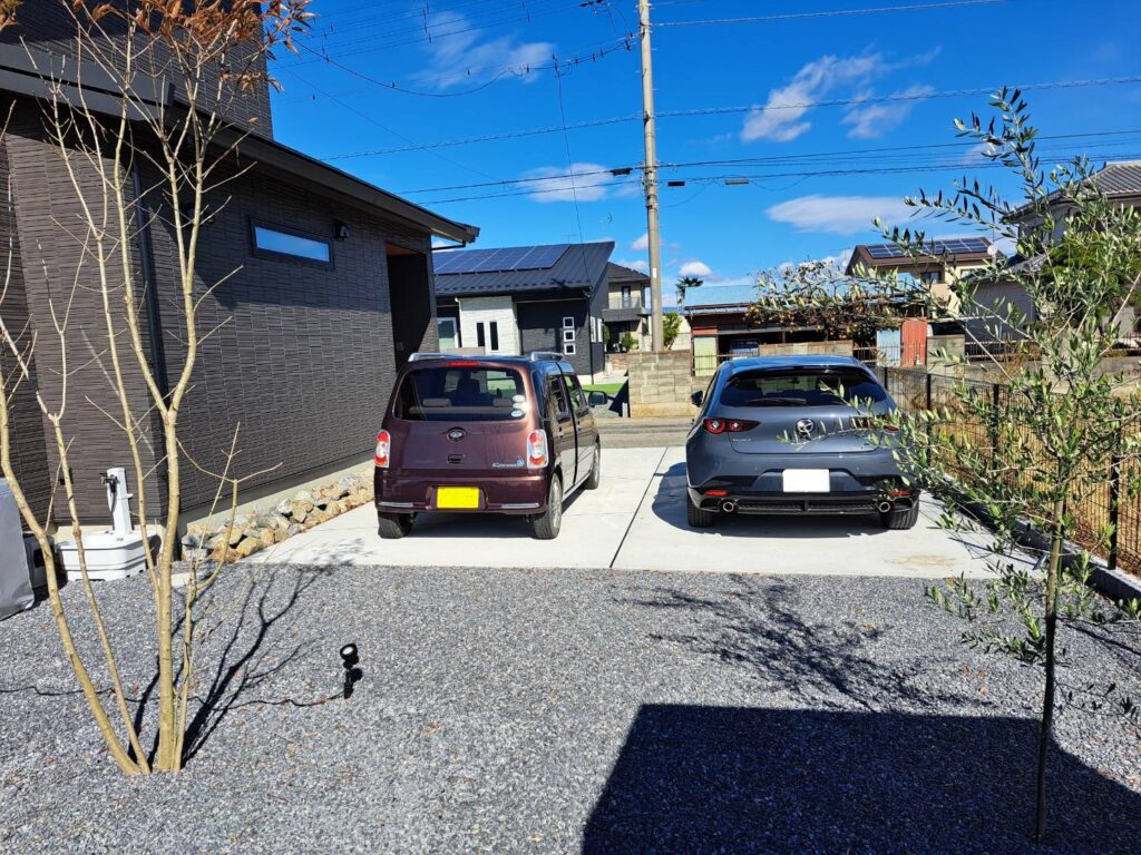 駐車場側にもゴロタ石を敷き、遊び心を演出☺