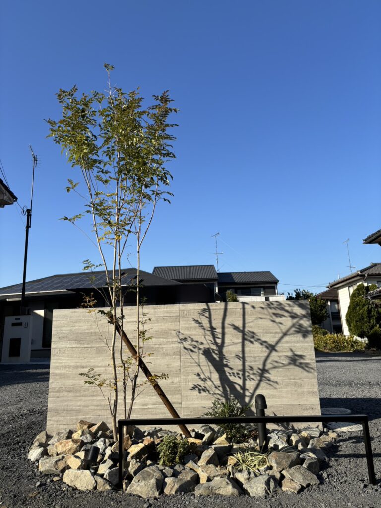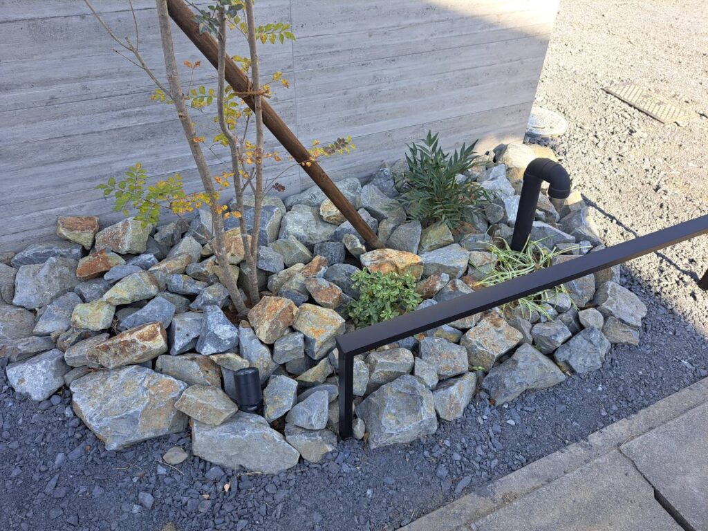 シンボルツリーの周りに印象的なロックガーデンを設置☺