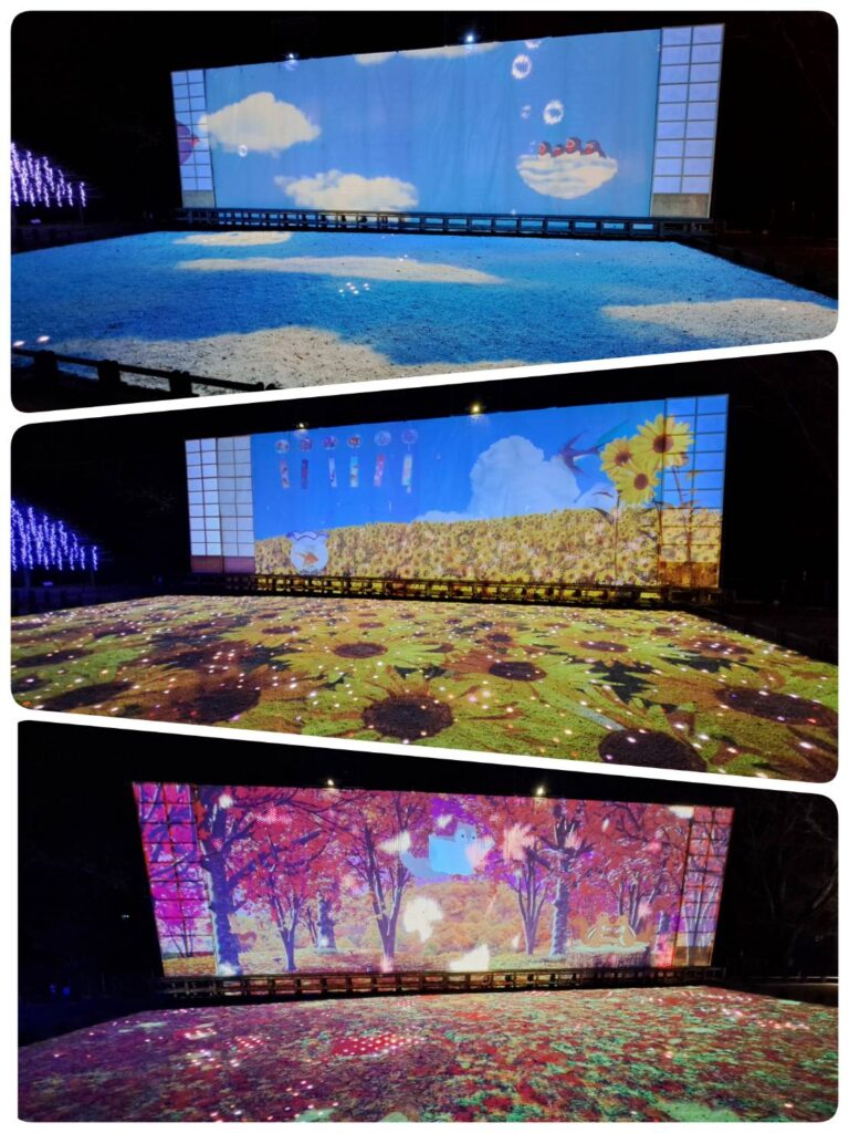 プロジェクションマッピングも使い、四季の世界に入り込みます。